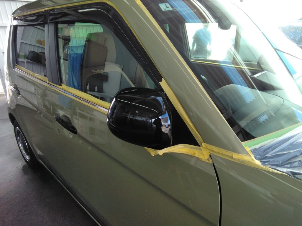 ドアピラーやサイドバイザーも磨いていくためしっかりとマスキングしていきます。