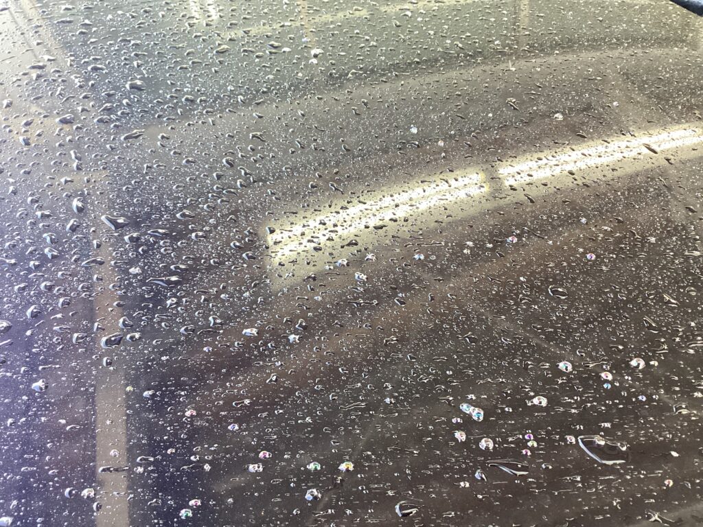 超撥水により水球がコロコロ転がっていきます。本物のガラス被膜で高級感のあるツヤがあり塗装を守っていきます。
