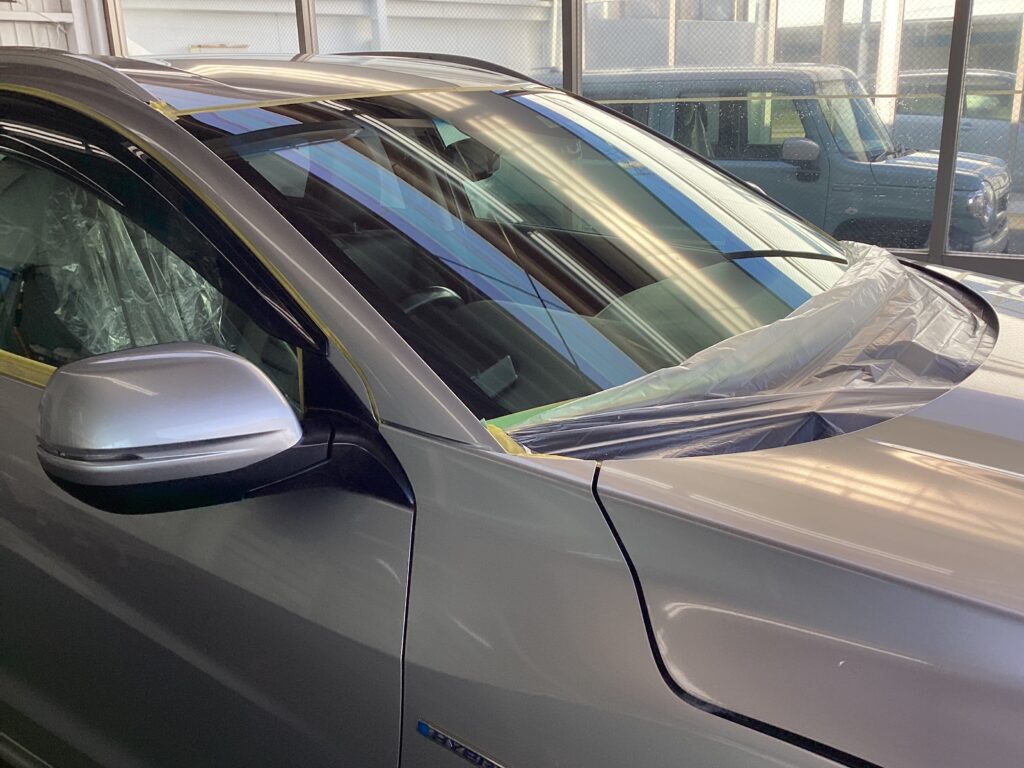 ドアピラーやサイドバイザーも磨いていくためしっかりとマスキングしていきます。